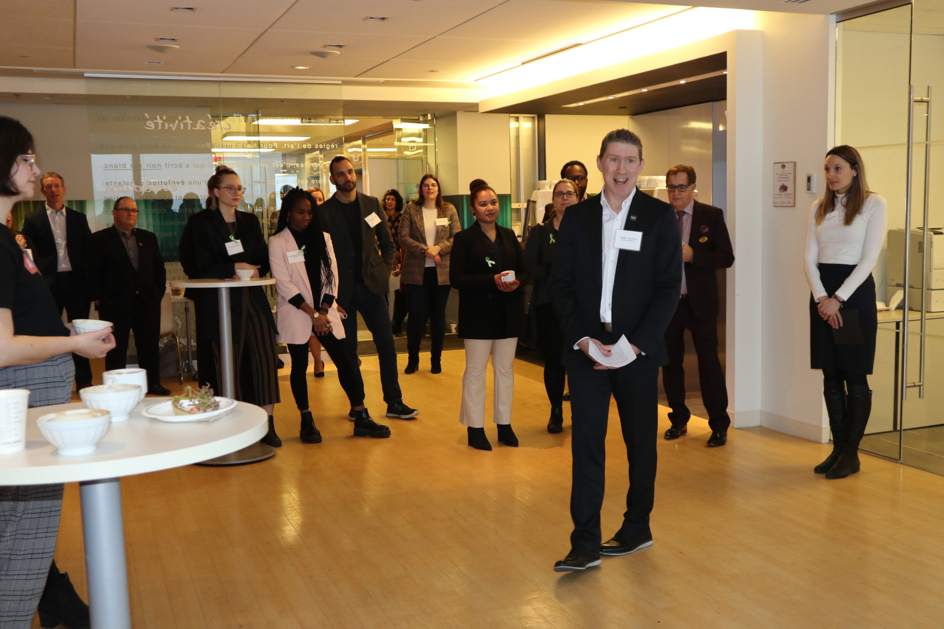 Dans un beau discours, Martin Cyrenne, associé principal chez Normandin Beaudry, a témoigné des bénéfices des stages d’un jour, qui permettent non seulement aux jeunes de découvrir un milieu de travail de façon concrète, mais aussi aux entreprises d’être en contact avec la main-d’oeuvre émergente.