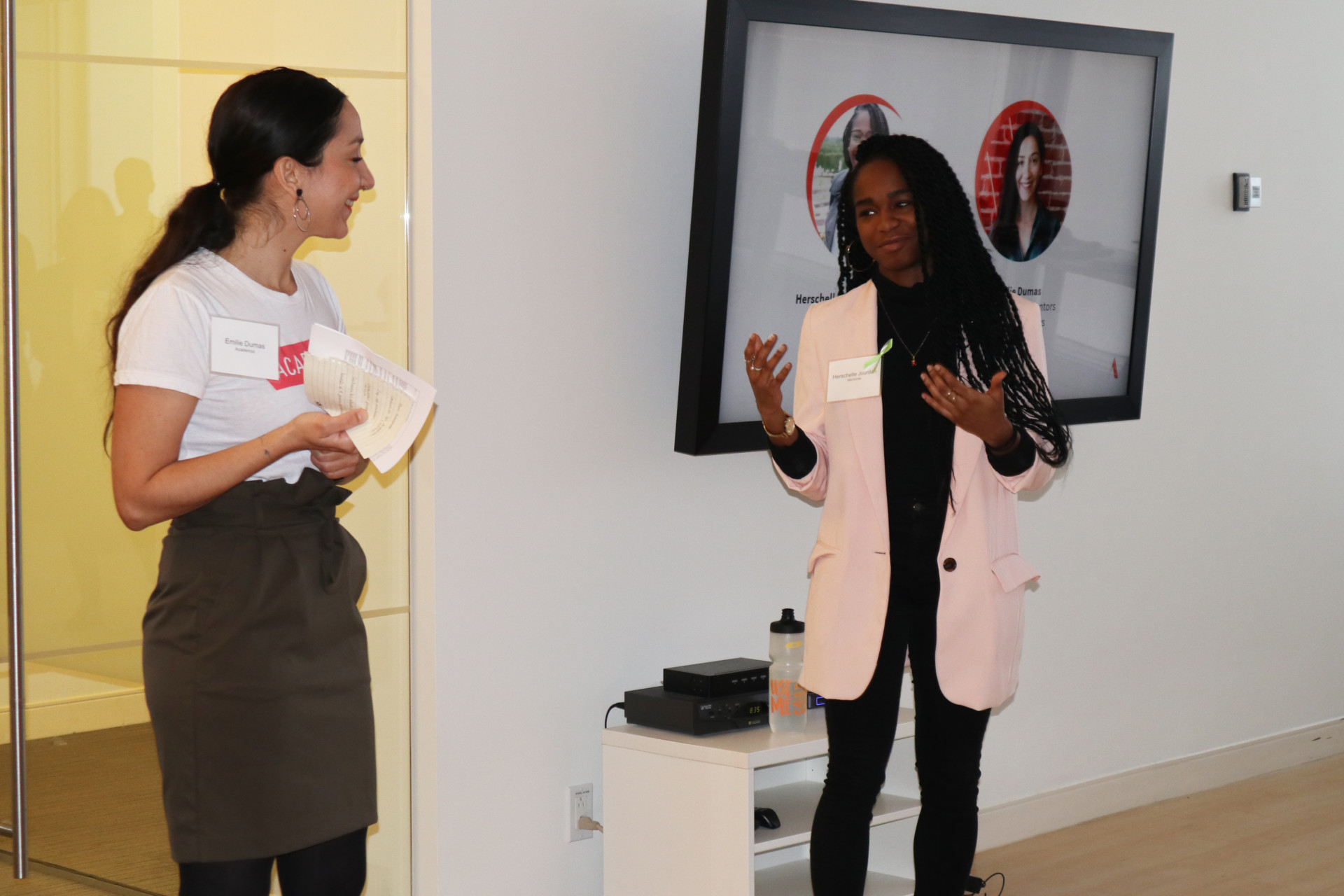 Herschelle Francesca Jourdan, une jeune mentorée qui utilise Academos depuis un peu plus d’un an, était aussi à l’événement pour expliquer comment Academos l’a aidée dans son parcours scolaire et professionnel.