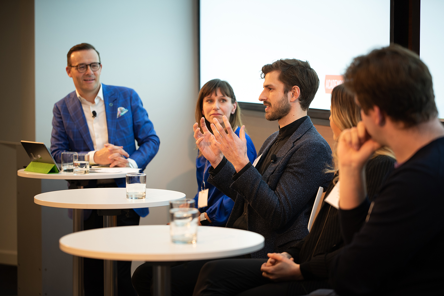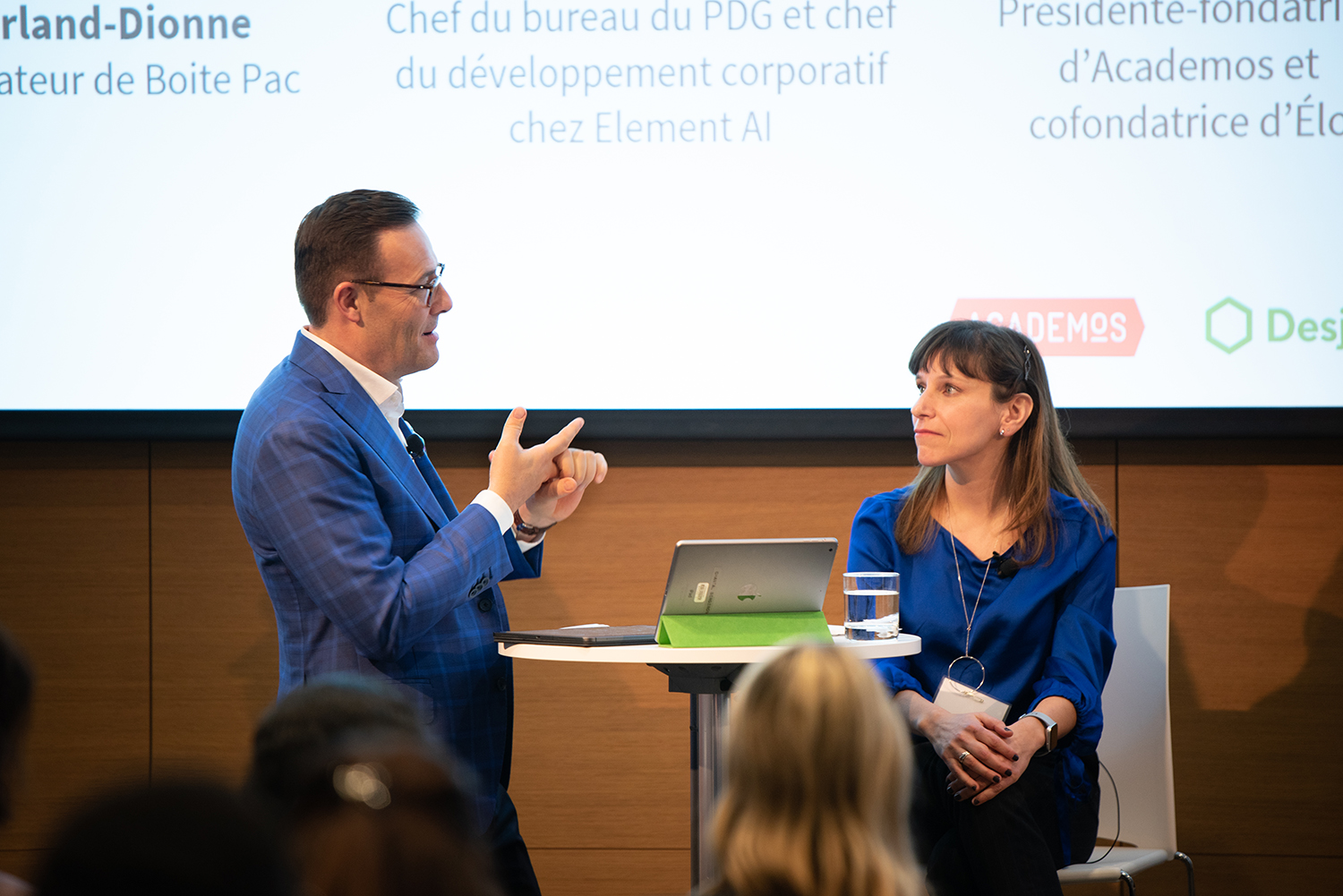 Ils étaient accompagnés de Catherine Légaré, présidente-fondatrice d’Academos, qui a pu compléter la discussion avec les données issues de notre rapport sur la génération Z. Le tout était dirigé par Guy Cormier, président et chef de la direction du Mouvement Desjardins, qui a profité de l’occasion pour annoncer sa nomination à titre de parrain officiel d’Academos.