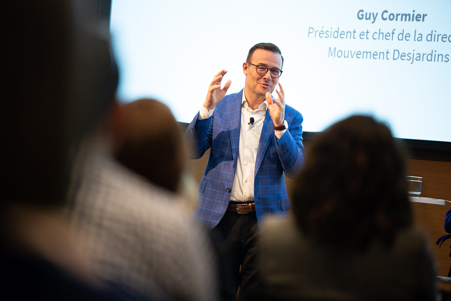 « Chez Desjardins, ce que je constate, c’est à quel point les gestionnaires doivent s’adapter rapidement, parce que pour les jeunes, les concepts de vie personnelle et de travail sont complètement éclatés », faisait remarquer d’entrée de jeu Guy Cormier.