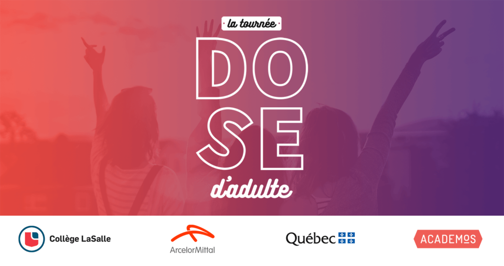 Montréal, le 12 novembre 2019. – Academos, la référence en mentorat pour les jeunes, part aujourd’hui à la rencontre de 2 500 élèves dans dix écoles secondaires du Québec dans le cadre de la troisième édition de la tournée Dose d’adulte, qui se déroulera jusqu’au 13 décembre en partenariat avec le Collège LaSalle, ArcelorMittal et le Secrétariat à la jeunesse du Québec.