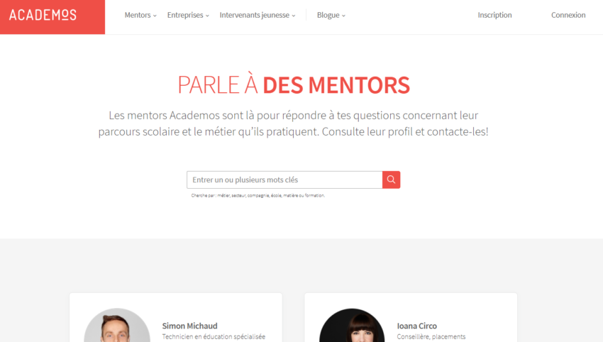 Notez bien que seuls les mentors qui ont un profil public apparaîtront et qu’il faut toujours être connecté à un compte Academos pour contacter les mentors.