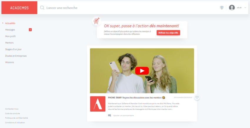 Tout d’abord, nous avons amélioré le processus d’inscription et d’accueil sur la plateforme d’Academos.