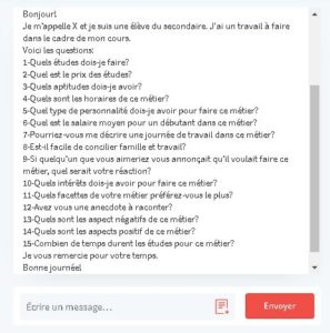 Bien que ce jeune soit malhabile dans son approche, il a choisi votre profil car il est curieux d’en apprendre plus sur votre parcours. Néanmoins, en aucun cas n’êtes-vous tenus de faire les devoirs de vos mentorés (ce que vous pouvez leur communiquer). D’autant plus que plusieurs informations se trouvent sur votre profil Academos. Cependant, certaines questions pourraient être pertinentes et mériteraient une réponse.