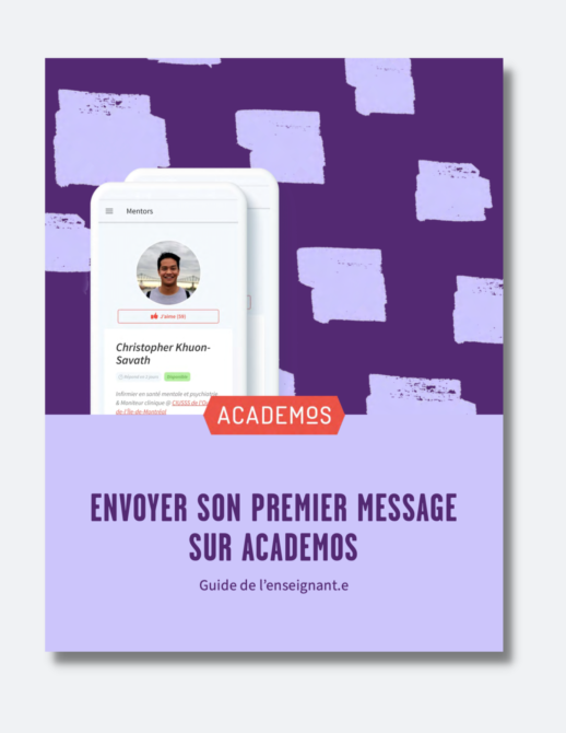 Envoyer son premier messagesur Academos est un outil pour bien préparer vos jeunes dans la rédaction de leur premier message. Nous vous proposons une solution toute faite ainsi qu’une liste de thématiques pertinentes pour aider vos jeunes à créer leurs propres questions. Vous trouverez aussi une liste de bonnes pratiques et de choses à éviter.